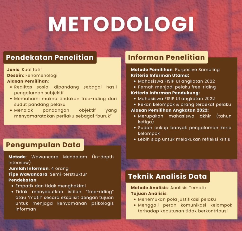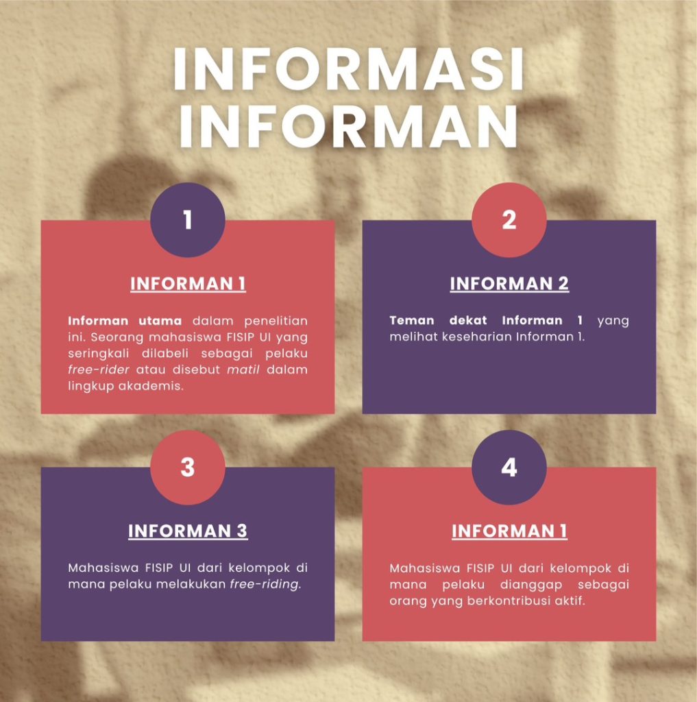 Fenomena ini sering ditemukan dalam lingkup akademik, termasuk di FISIP UI yang menerapkan metode project-based learningsehingga mendorong mahasiswa untuk bekerja dalam kelompok.